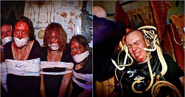 4. Ada staf rumah hantu yang akan 'menyiksa' pengunjung layaknya di film pembunuhan. Mereka juga berdandan seram sehingga tampak sangat menakutkan.